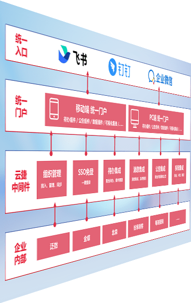 对协作平台提供支持服务,,,支持企业应用与协作平台对接,,,包含组织同步、、、、消息集成、、、、待办集成等。。支持目前主流的协作平台:钉钉、、企微和飞书。。。。